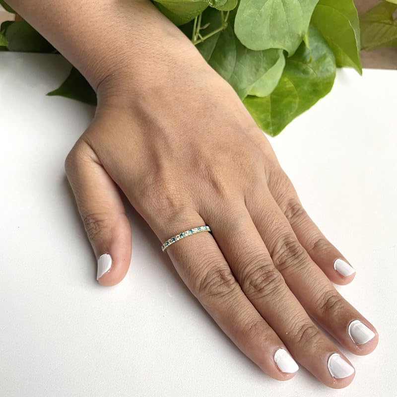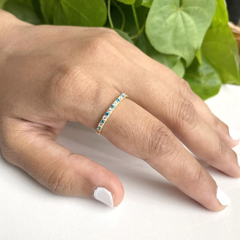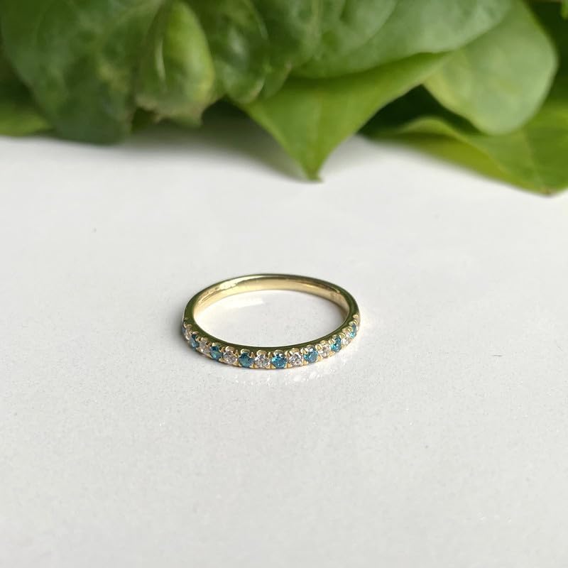 This Band Crafted in 925 Sterling Silver, available in 14K White, Yellow and Rose Gold Plating. Round Cut simulated Topaz & White Diamond set in prong setting.