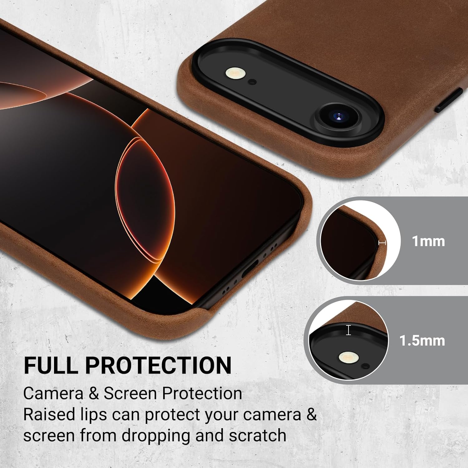 | Additional Features | Full-grain Leather, Magsafe Compatible, Wireless Charging Compatible, Camera Control Capture Button, Metal Buttons, Metal Camera Bezel Bump, Raised Edges, Rich patina, Vintage Sleek Style, Soft Grip, Slim Fit, Lightweight |