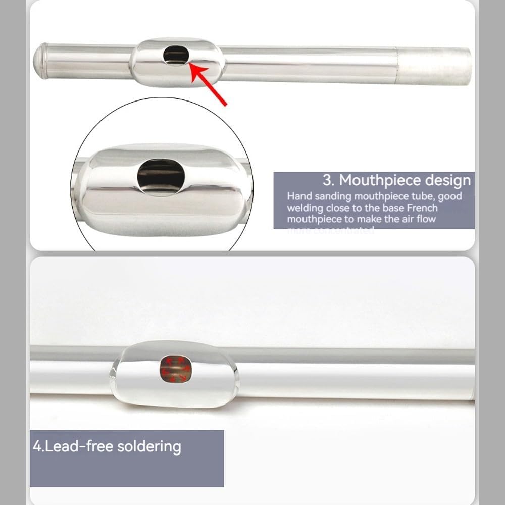 Product Name:Silver Plated Curved C-Tail Flute with 16 Hole Electronic Key Colour: multi-coloured. Material: white copper Key System: Curve/Shutter/E Key Dimensions before packing (cm): 67x4,5x3 Package Size(cm): 43X13X6.5 Net Weight (g) Weight: 461 Packaging: flute box packaging Packing list: flute *1, screwdriver *1, piano cloth *1, gloves *1, cleaning swab *1, storage box *1, protective cover *1.