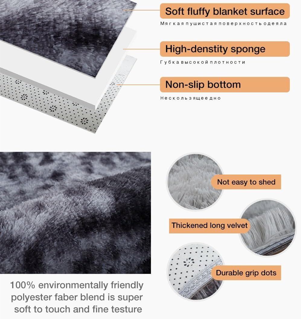 Decoration Style:Modern minimalismTechnics:Machine MadeMaterial:100% PolyesterShape:RectanglePattern Type:SolidPlace:Living RoomWash Style:Hand Wash,Mechanical WashUse:Home,HOTEL,bedroom,OUTDOOR,Decorative,CommercialShaggy Area Rugs:The fluffy rug is made of three-layer material: synthetic microfiber on the top, thick sponge in the middle, and non-woven fabric on the back, which is makes bedroom rug softer and more comfortable.Non-slip Bottom:The bottom of the rectangular carpet is covered with many high-density non-slip points, which help increase friction with the floor and prevent sliding.So it is very suitable for children to use in bedroom, living room, kids room.Perfect decoration:using the latest dyeing process, it has added a little abstract vision on the basis of retaining the modern appearance, add a fresh touch and look to your room. Tie Dyed color design is simple and elegant, which can make for a wonderful addition to any room, and able to slot in with any interior design style easily.Multifunctional Home Decor:The shaggy soft rug adopts a minimalist design and modern style concept. Each area rug with a simple design in a solid color turns your room into an inviting space. The soft fluffy carpet is available in multiple colors and sizes to suit your different styles and needs, so as to create your personalized space.Easy to Clean:Usually only need to use a vacuum cleaner for simple cleaning.For a deeper clean, wipe with a damp cloth.The rug pack with a vacuum bag, the thickness will recover within two days, please don't worry.