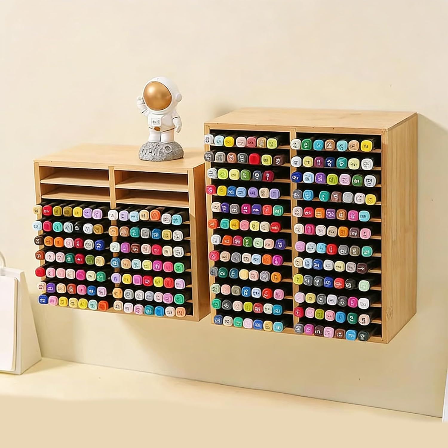 Elegant Wooden Storage Rack With Multiple Dividers For Efficient Offices Use Features: This wooden marker organizers features a multiple grids structure with ample compartments for efficient color categorization, solving the searching for specific markers on cluttered desks Perfect for creative professional needing organized workspaces Crafted from wood, this marker stand ensures long time durability without warping More stable than alternatives, ideal for homes and offices Designed with visible slots to showcase each marker ’ s color, eliminating confusion Artists and designs can quickly identify shades during projects for seamlessly creativity Easily assembled without tool, saving time and effort Ideal for frequent movers or those who prefer flexible workspaces arrangements, enhancing daily convenience The smooth wood grains finish blends into modern, rustics, or minimalists decoration Combines functionality with elegant styles for designs users Specifications: Materials: Wood Size: 9.88x6.14x8.46inch Package Includes: 1pc Marker Storage Rack Note: 1.Please allow 1-2cm errors due to manual measurement, making sure that you will not mind before order 2.Due to the differences between different monitors, the picture may not reflect the actual color