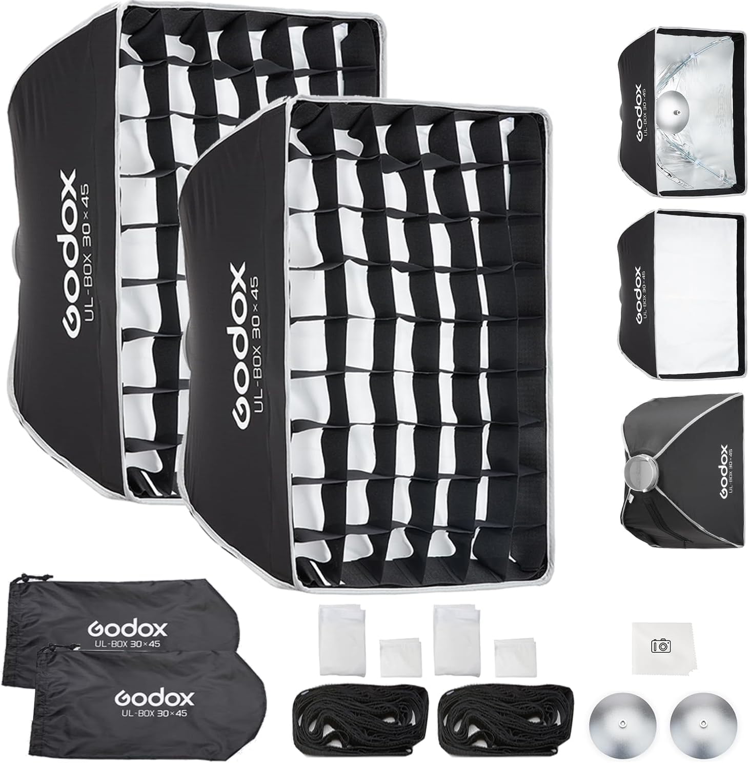 | BuiltIn Media | 2x 30x90cm Rectangle softbox,2x inner white diffuser,2x outer white diffuser,2x honeycomb grid,2x diffuser plate,2x carry bag,1x soft cloth |
