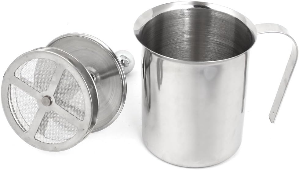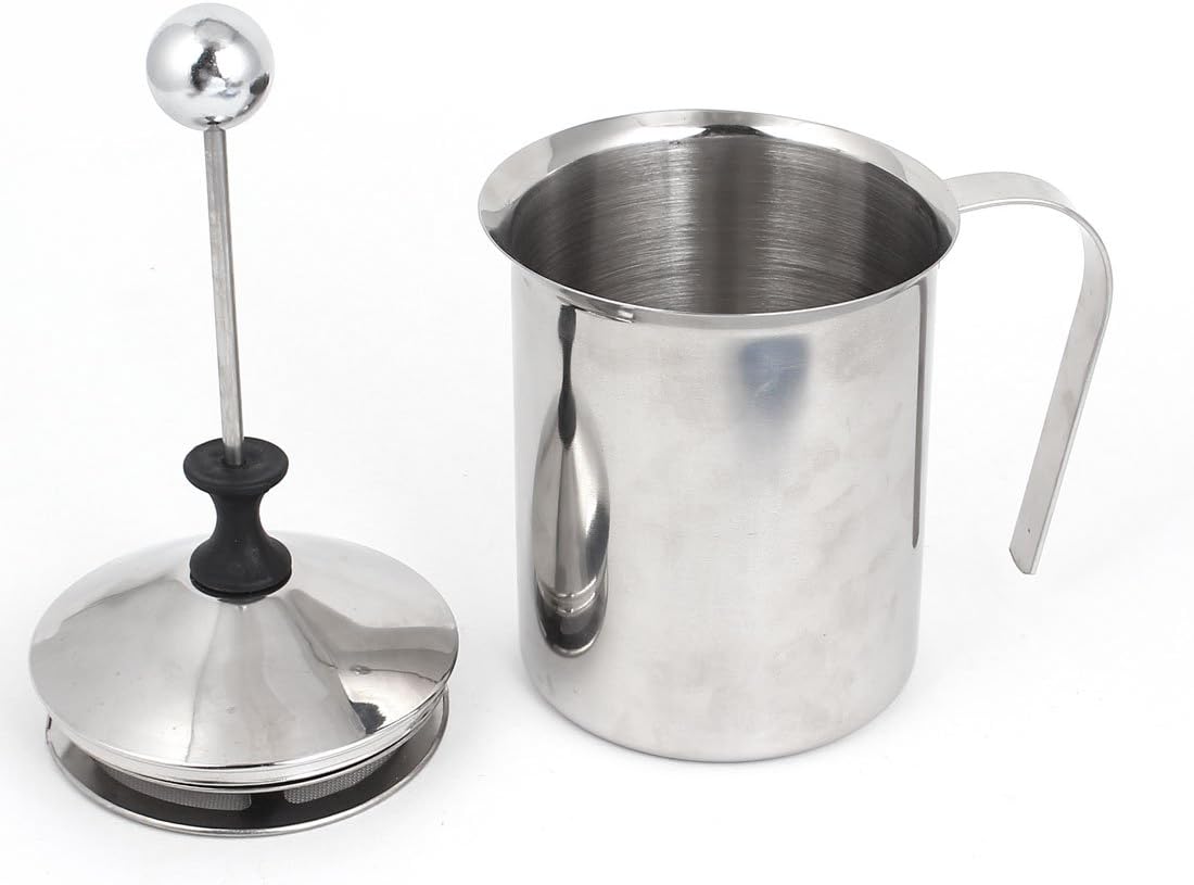 Home Kitchen 200ml Stainless Steel Double Mesh Creamer Milk FrotherThis simple manual milk frother is one of the easiest to use and the most effective. Create thick, creamy froth for perfect cappuccinos, lattes or hot chocolate with this stainless steel milk frother.Simply add cold or warm milk, pump the knob up and down then pour. Made of Stainless steel,heat resistant handle, knob and lid grip .Double mesh makes whipped milk easier and faster .Transfer to a small pitcher and swirl a few times to make perfectly textured light, creamy milk. Turn an espresso into a delicious latte or cappuccino. You can even make your own latte art. Perfect for coffee shop,as a birthday gift etc. How to use: 1.Pour 70mL of fresh milk in the container .2.Heat it until 45Degree-60Degree.3.Press the faster for about 40 times .4. Pour out the cream .