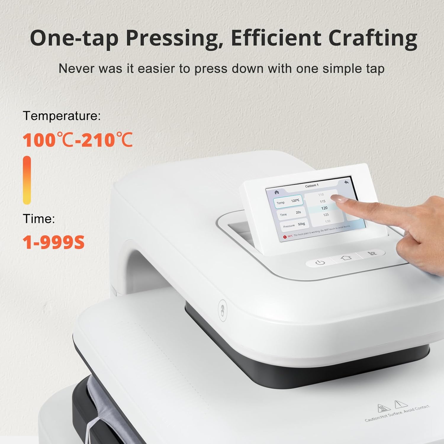 Automatic Heat Press Machine for T Shirts 15X15 Package contains: 15x15 inches automatic heat press machine Detailed instruction manual Advantages of our heat press 15x15 : ①Heats up fast & distributes heat evenly. ②Easy to use & suitable for beginners ③Easy to set up & temperature and time can be adjusted ④Adjust the pressure of the heat press machine to 20-80 kg Specifications of heat press: Max Temperature: 210℃/410℉ Max Pressure: 80 kg/170 lb Max Material Height: 4.5 cm Compatible Materials: HTV, Sublimation Paper, Heat Transfer Paper, DTF, etc. Dimensions: 53.0 x 43.5 x 33.0 cm/20.9 x 17.1 x 13.0 in Weight: 20.0 kg/44.1 lb Input Power: 120V~ 60Hz 1500W; 220-240V~ 50-60Hz 1400-1600W Application: √ Ideal for heat transfer vinyl,sublimation,sublimation vinyl, etc. √ Making and design your clothes √ Perfect gift for friends, family Quality service: LOKLiK is committed to providing customers with high-quality customer service. The warranty period of this heat press machine is 1 year from the date of purchase. If you have any questions with 15x15 heat press, please feel free to contact us ASAP. We will try our best to solve your problems and provide you with a joyful experience.