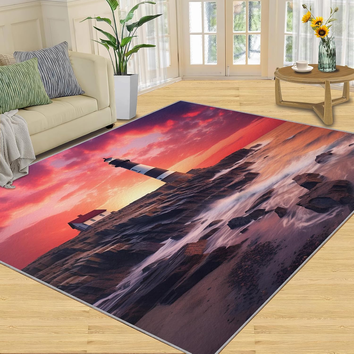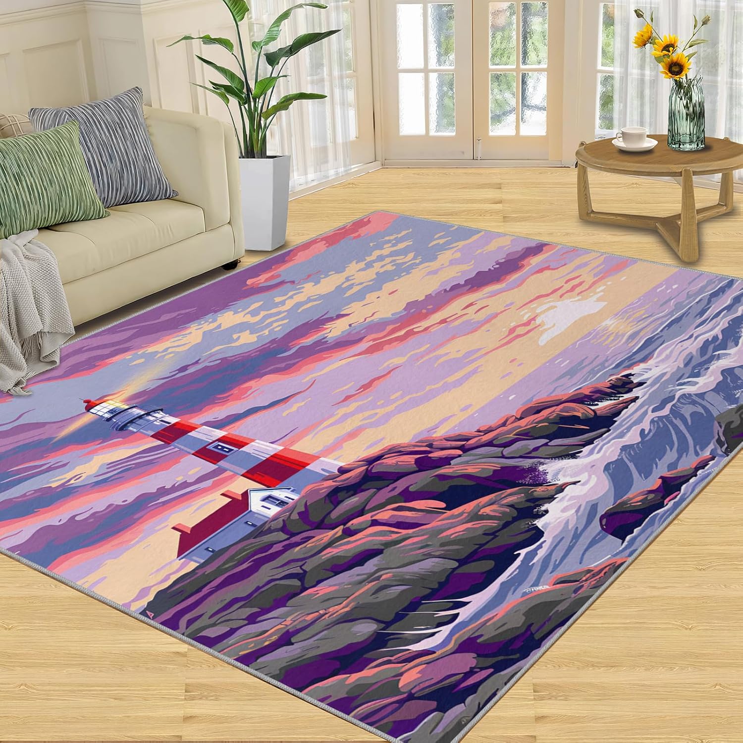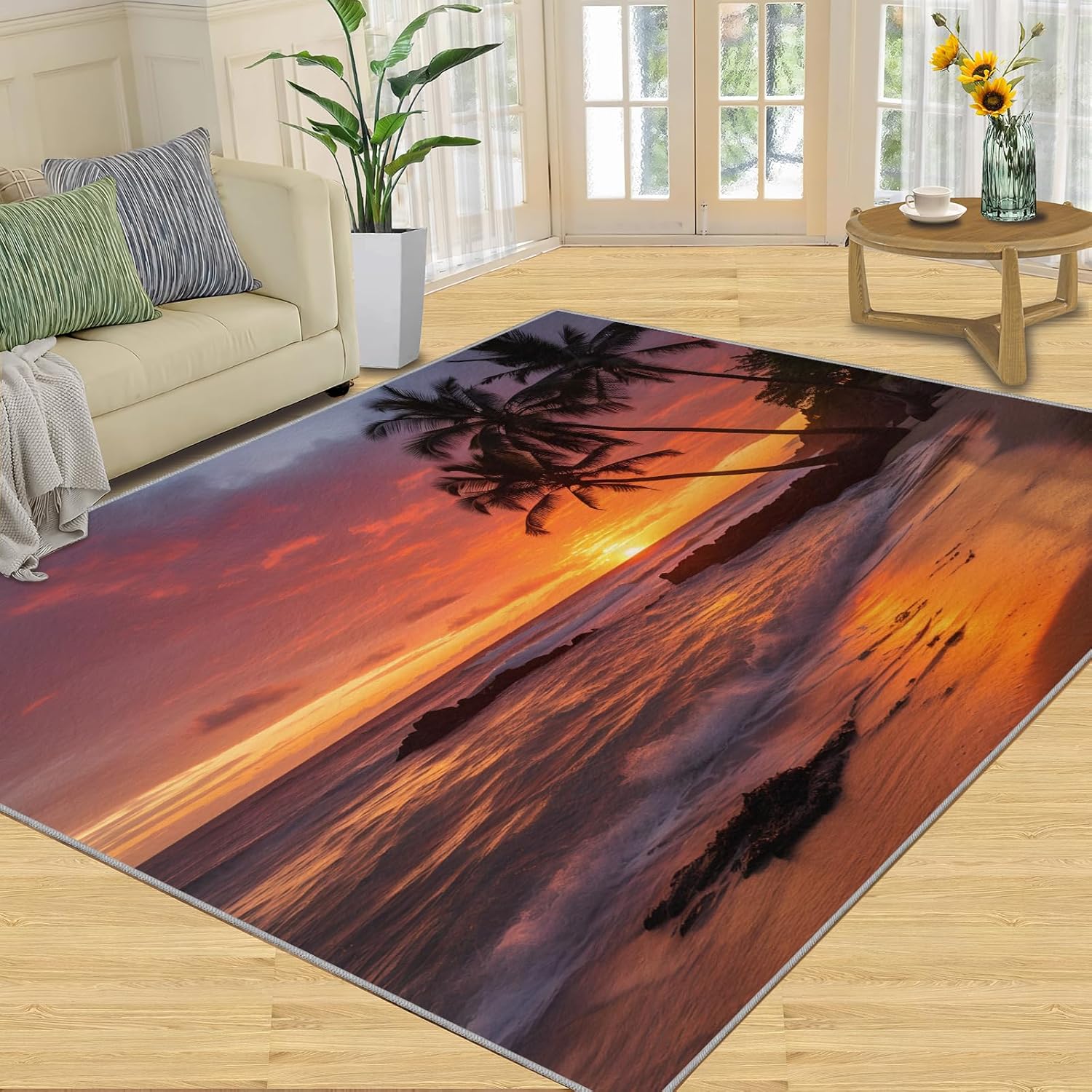 Printed rug add color to your life, will be the centerpiece of any spaceFeatures:Exclusive DesignArea Rugs adopt digitally printed and heattransferred technology to achieve clear patterns, bright colors and long-lasting effects. Print rug has a trendy style and a unique pattern to bring any room aliveSoft SurfaceArea rugs are made of natural flannel fabric, super soft to the touch.Soft low pile rugs can soothes tired feet, and reduces the noise when walking and creates a quiet environment for youNon Slip BackingNon slip rug features a reliable anti-slip backing, effectively preventing slips and trips. This ensures a safer environment for your children and pets to play. Ideal for indoor high-traffic areas, providing peace of mind and safety for daily useReinforced EdgeOur washable rug has high-density stitched edges that make him stronger and not easy to loose and can make area rugs last longerWide UseWhether placed in living room, dining room, kitchen, dorm, porch, office, kids' room, or bedrooms, this rug effortlessly complements your home decorMachine WashableRug is machine washable. It is recommended to wash them in cold water. If small dust and dirt on the surface, you can clean it with a rag, broom, or vacuum cleaner. Avoid using bleach and high-temperature ironingPile Height: 0.31inchMaterial : Natural flannel fabric & Sponge layer & Non slip dots bottomSize: 3x5 ft /90x150 cmWeight: 3.08 poundsPackage List:Area rug × 1Please Note:1.Due to different monitors, the actual color may differ slightly from the picture, please refer to the actual product2.Due to different measuring tools, there may be a deviation of ±2%