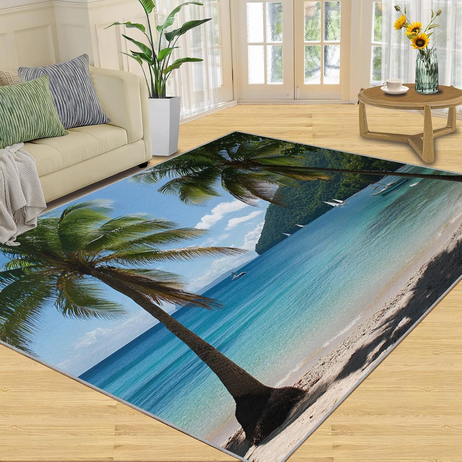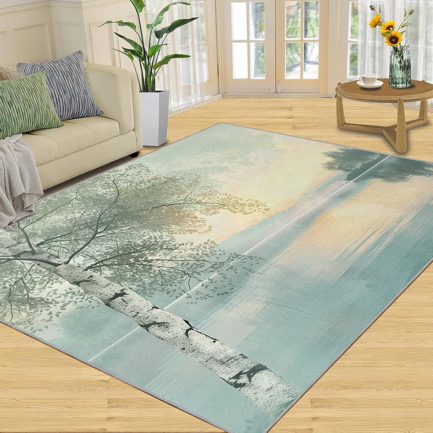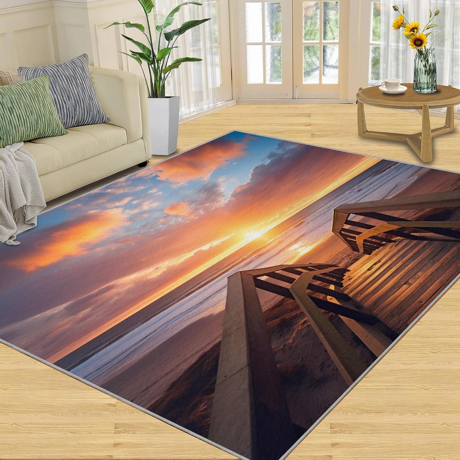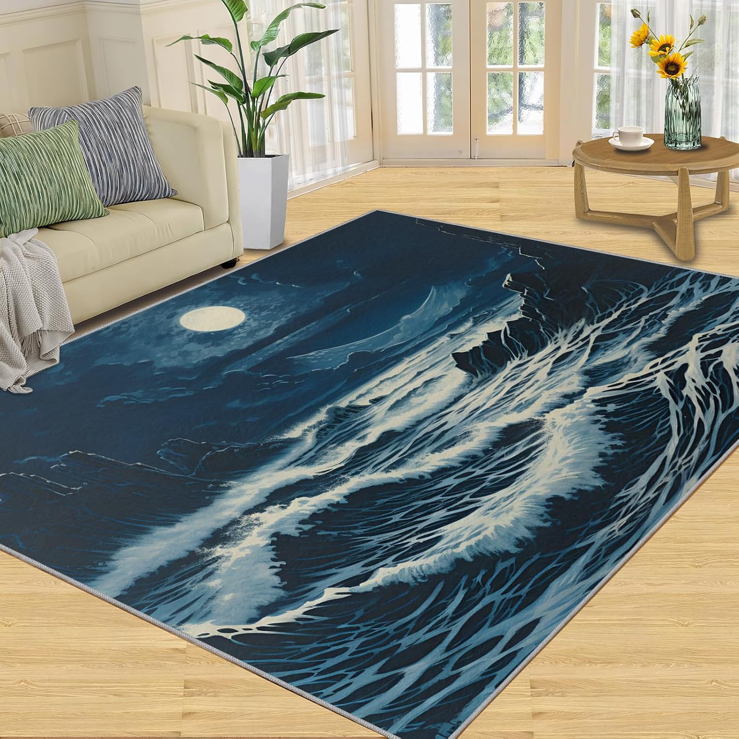 Printed rug add color to your life, will be the centerpiece of any spaceFeatures:Exclusive DesignArea Rugs adopt digitally printed and heattransferred technology to achieve clear patterns, bright colors and long-lasting effects. Print rug has a trendy style and a unique pattern to bring any room aliveSoft SurfaceArea rugs are made of natural flannel fabric, super soft to the touch.Soft low pile rugs can soothes tired feet, and reduces the noise when walking and creates a quiet environment for youNon Slip BackingNon slip rug features a reliable anti-slip backing, effectively preventing slips and trips. This ensures a safer environment for your children and pets to play. Ideal for indoor high-traffic areas, providing peace of mind and safety for daily useReinforced EdgeOur washable rug has high-density stitched edges that make him stronger and not easy to loose and can make area rugs last longerWide UseWhether placed in living room, dining room, kitchen, dorm, porch, office, kids' room, or bedrooms, this rug effortlessly complements your home decorMachine WashableRug is machine washable. It is recommended to wash them in cold water. If small dust and dirt on the surface, you can clean it with a rag, broom, or vacuum cleaner. Avoid using bleach and high-temperature ironingPile Height: 0.31inchMaterial : Natural flannel fabric & Sponge layer & Non slip dots bottomSize: 3x5 ft /90x150 cmWeight: 3.08 poundsPackage List:Area rug × 1Please Note:1.Due to different monitors, the actual color may differ slightly from the picture, please refer to the actual product2.Due to different measuring tools, there may be a deviation of ±2%
