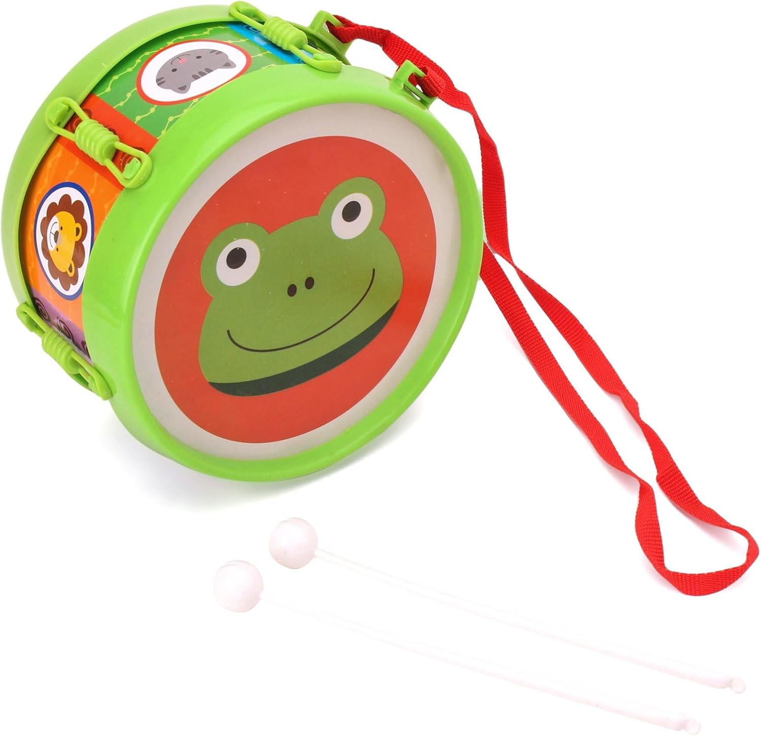Music toys allow children to discover the world of music while having fun. This bright coloured drum is perfect for your child's budding marching band. The drumsticks are the right size to easily grip them by little toddler hands. It is made of sturdy and strong material and comes with two rods. The chopsticks are the right size to work well with small toddler hands. It also features a strap for easy transport. Let your child march to the beat of fun and learning! The Toyfun Drum SR is a vibrant, kid-friendly drum set inspired for musical play and creativity. With two easy to hold sticks, children can knock out beats, explore rhythm and develop coordination - all with lots of fun.