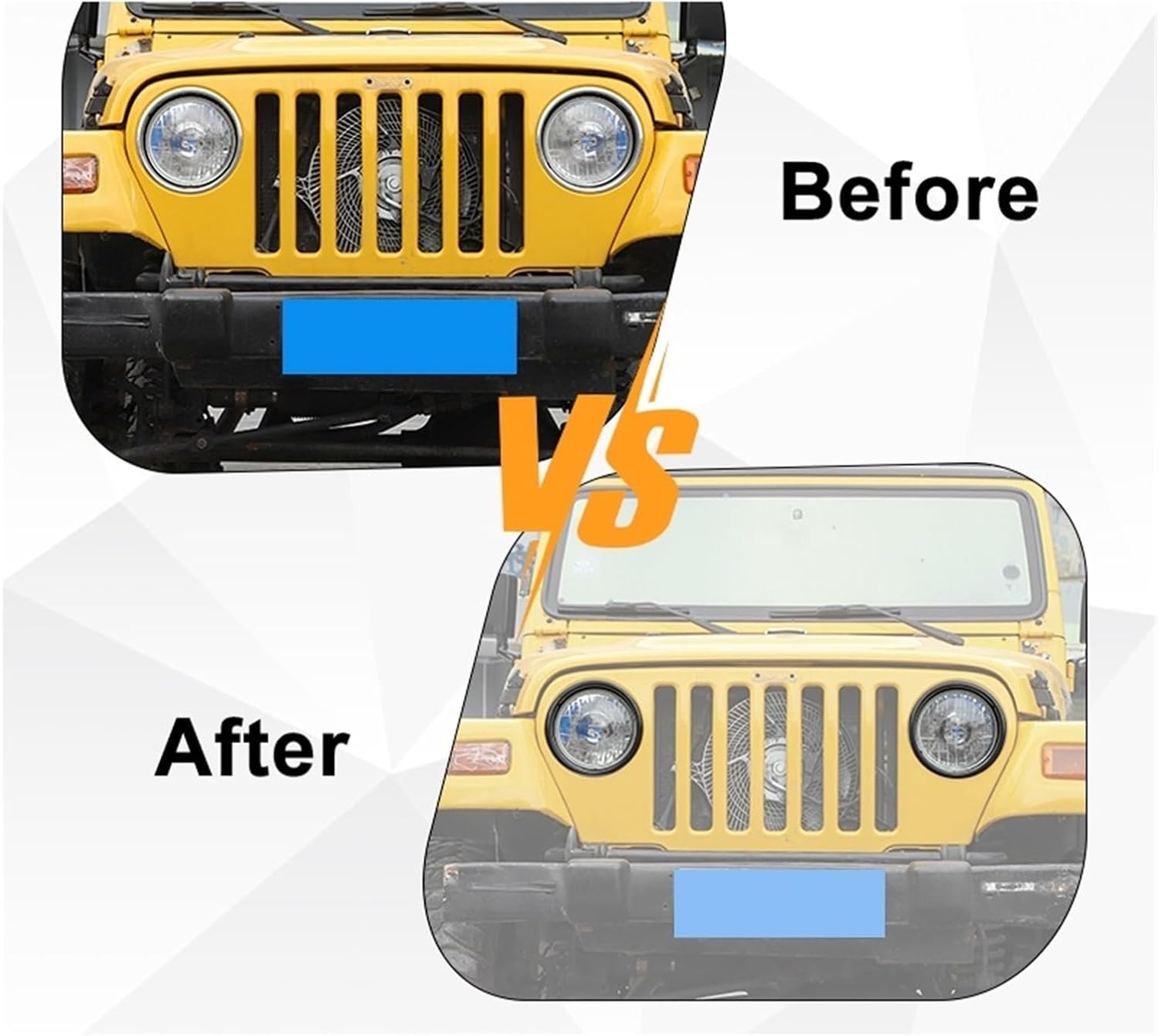 ABS Black Car Front Headlight Lamp Decoration Cover Trim Stickers Compatible With Jeep Wrangler TJ 1997-2006 Exterior Accessories1. Car Model: Compatible With Jeep Wrangler TJ 1997-20062. Material Type: ABS3. Package Include: 2 pcs a setNote: 1. Please check whether this item can on your car before purchasing2. If have any question please feel to contact us.Welcome to my store, it's an honor to serve you. We have a wide selection of automotive parts for you to choose from.