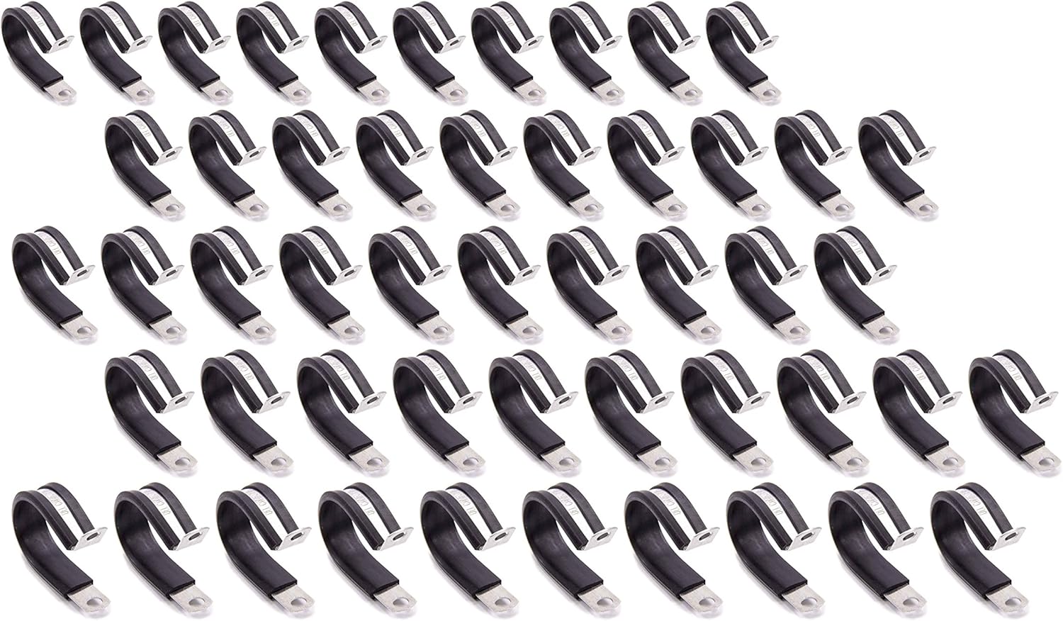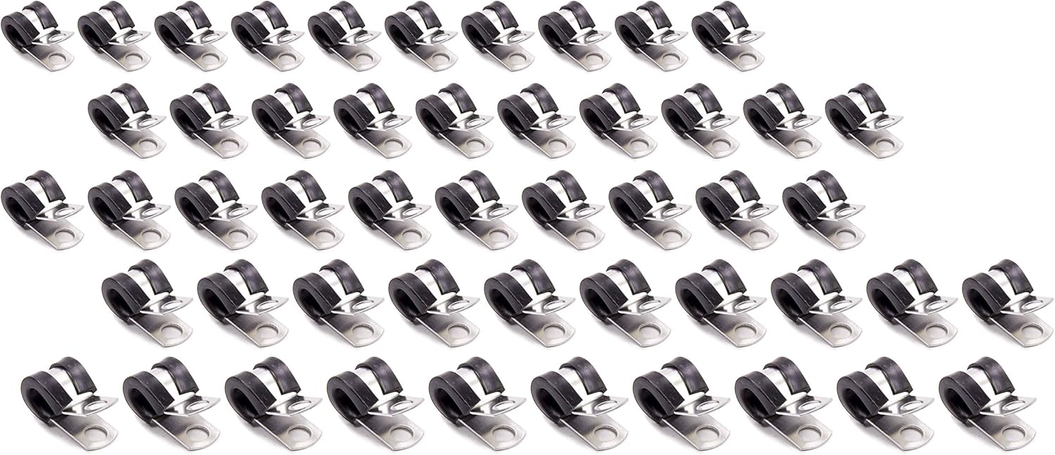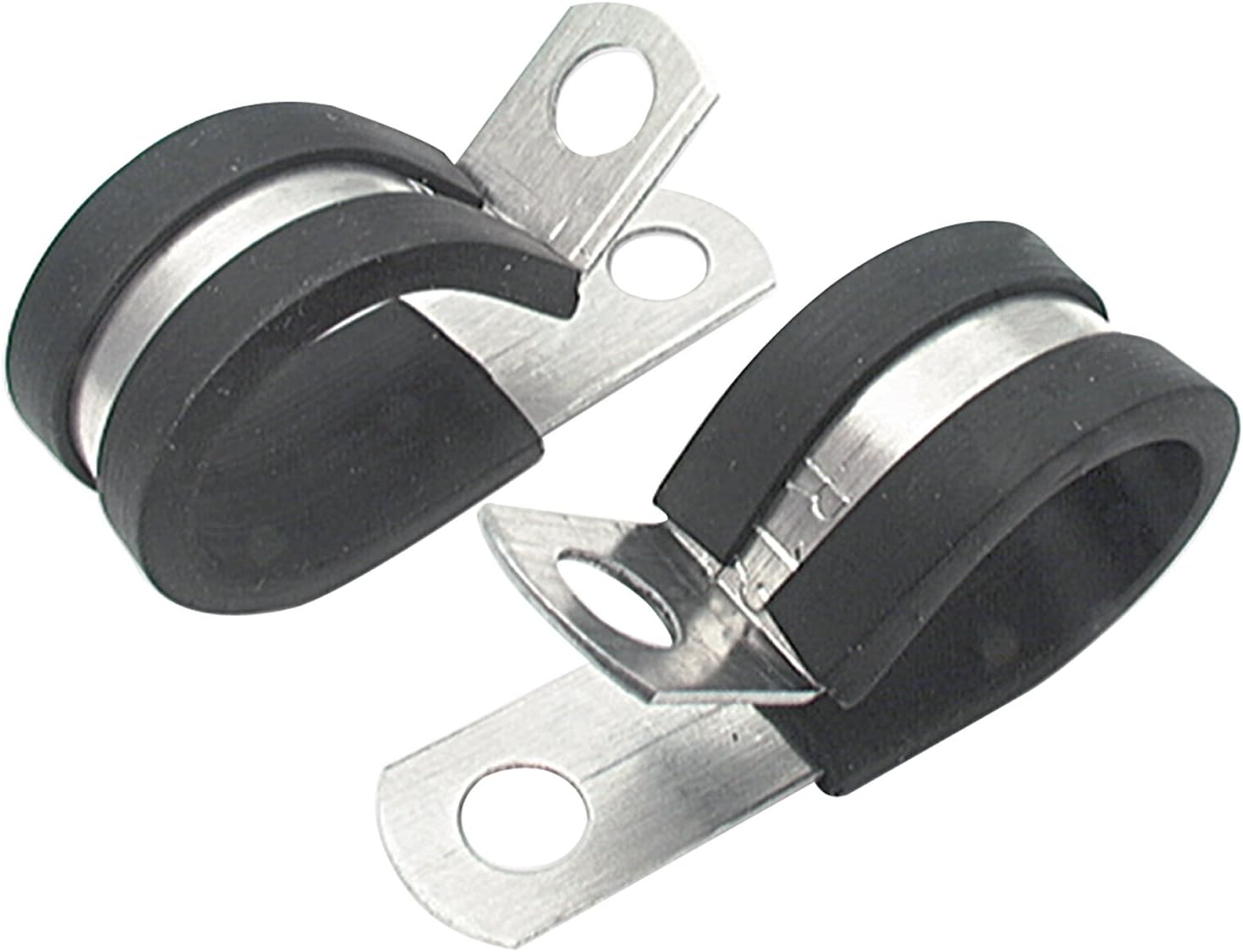 Aluminum clamps have a protective neoprene cushion to prevent abrasion and a 1/4" mounting hole to secure electrical wiring, hoses or cables to a panel or frame. Package of 50.