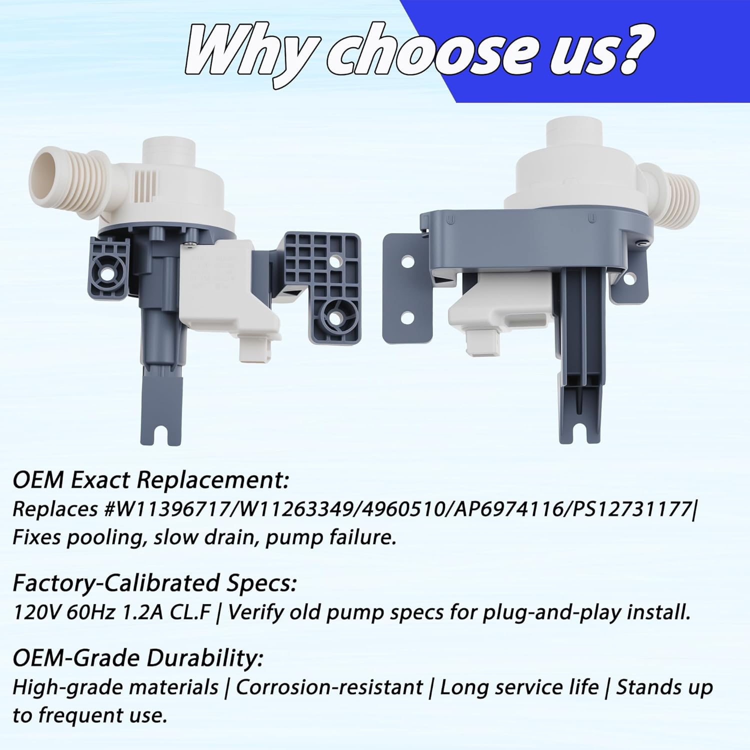 | Included Components | 1*W11396717 W11263349 Washer Drain Pump |