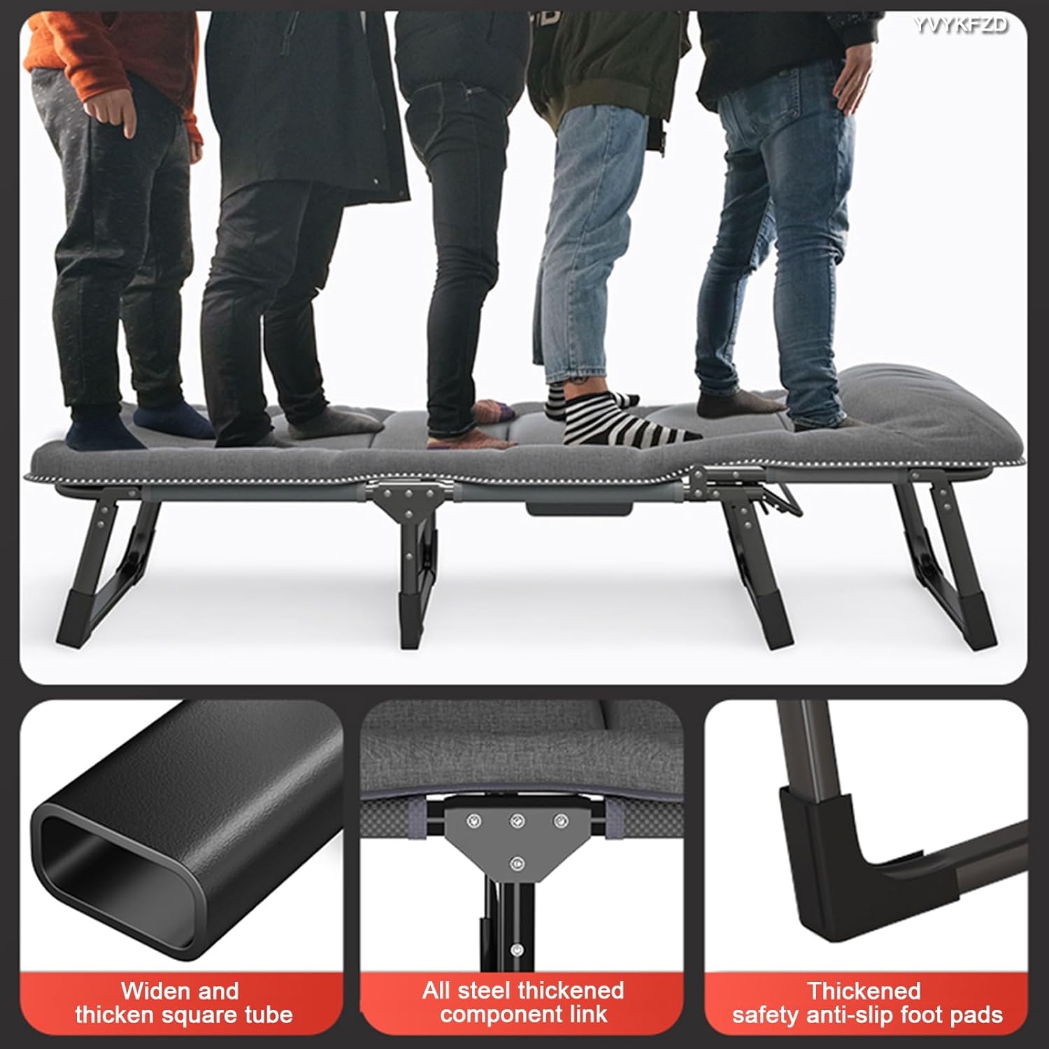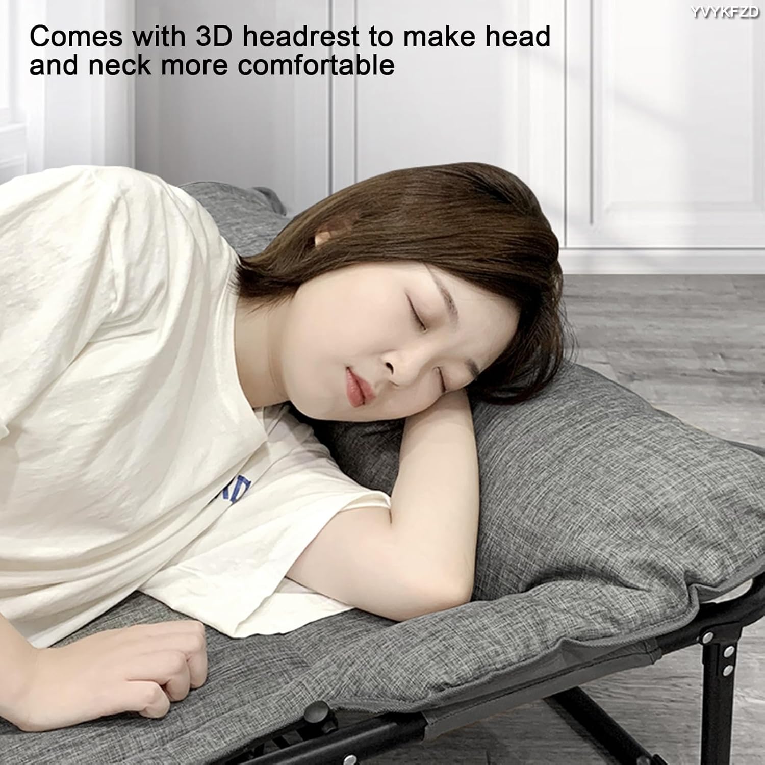 Thank you for visiting YVYKFZD store.* Relax in comfort with our plump 3D pillow. Filled with fluffy PP cotton and featuring fine stitching, YVYKFZD large curved pillow provides full rebound and a firm fit for your head and neck. Perfect for a good night’s sleep while camping!* Side storage pocket allows you to store your phone, water for easy access. Non-slip foot pad and tight connection ensure additional safety and stability. Moreover, YVYKFZD travel bed requires no assembly.* The YVYKFZD folding travel camping cot is not only the perfect choice for your outdoor camping, but also suitable as a lounger by the swimming pool and the beach to let you enjoy the sun, and also an ideal temporary bed for entertaining guests.Product information:Product name: Folding camping cot with mattressProduct material: Bold steel pipe + Oxford fabricProduct features: Combination of sitting and lying, outdoor leisureGear adjustment: 4 gear adjustment, free of installationSize: (LxWxH)175x60x30cm/68.8x23.6x11.8in, 190x70x30cm/74.8x27.5x11.8in (cotton and linen), 170x60x30cm/66.9x23.6x11.8in, 190x70x30cm/74.8x27.5x11.8in (sueed)Max load: 160kg/352lbNotes: 1. Due to the lighting effects and photographing angles, there is a color difference in the product, please understand.2. Please forgive me for slight deviations in product size due to manual measurement.